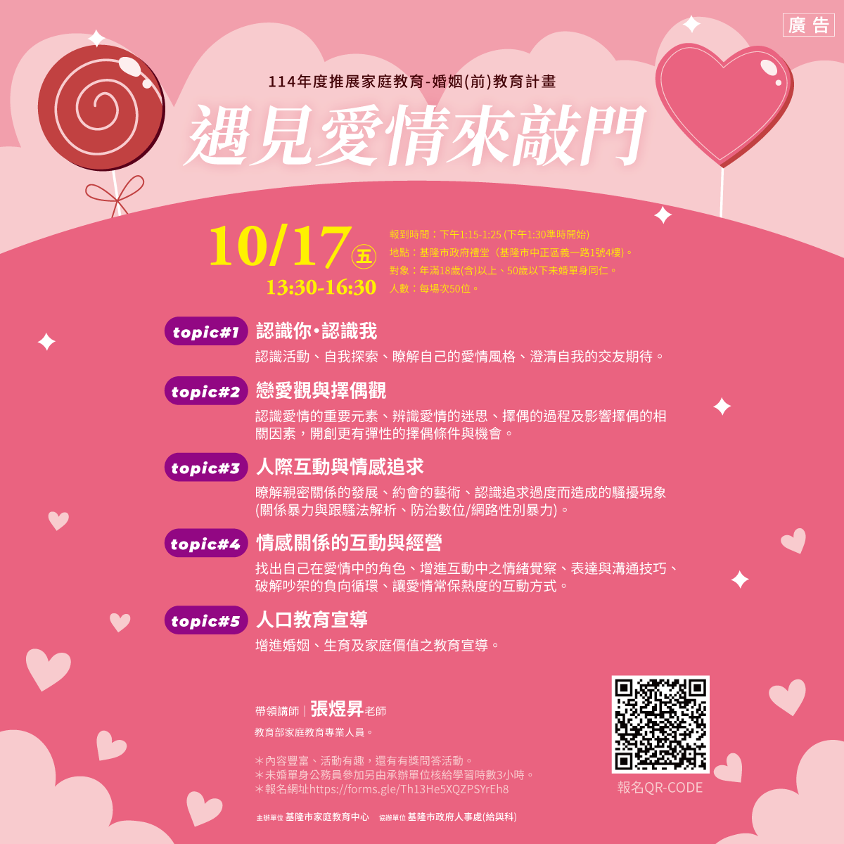 轉知基隆市政府辦理「遇見愛情來敲門」(第2場)